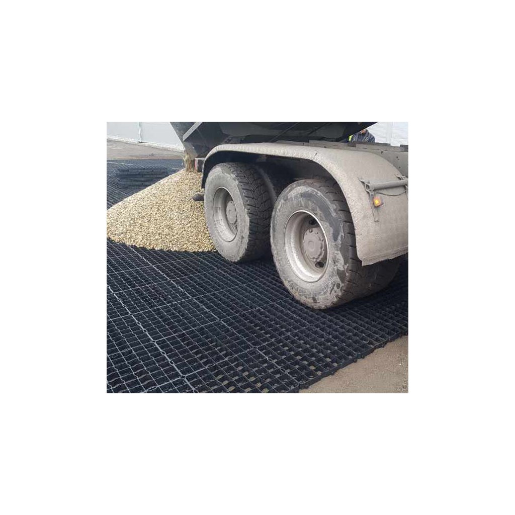 Plastová zatravňovací dlažba je vhodná zejména pro velká parkoviště, příjezdové cesty, požární přístupy, odstavné a skladovací plochy (je vhodný i pro těžké kamiony a pojezd manipulační technikou), průmyslové areály, odstavné plochy na letištích, apod. Díky tloušťce stěny 5 mm přitom snese i bez výplně zatížení až 500 t/m². Vyplněním dlažby se nosnost ještě zvyšuje.