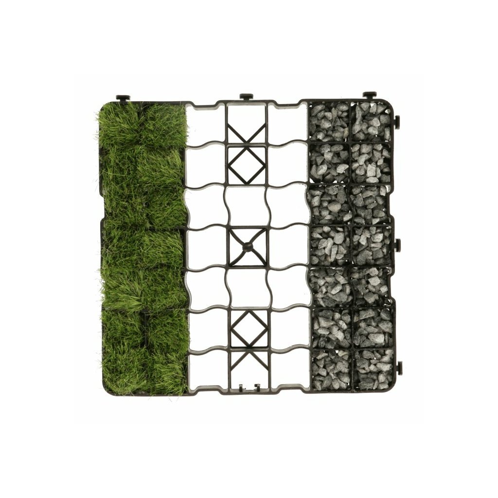 Jednotlivé dlaždice se navzájem spojují pevnými čepy a tak vytvářejí jednu spojitou plochu, která zajišťuje rovnoměrnější rozložení zatížení. To například omezuje vznik vyježděných kolejí od aut. Zatravňovací dlažba N50 PRO je vysoká 5 cm, takže poskytuje více místa pro kořeny a je tak ideální pro zatravnění. Vhodná je ale i výplň štěrkem či jiným kamenivem, keramzitem, pískem, apod.