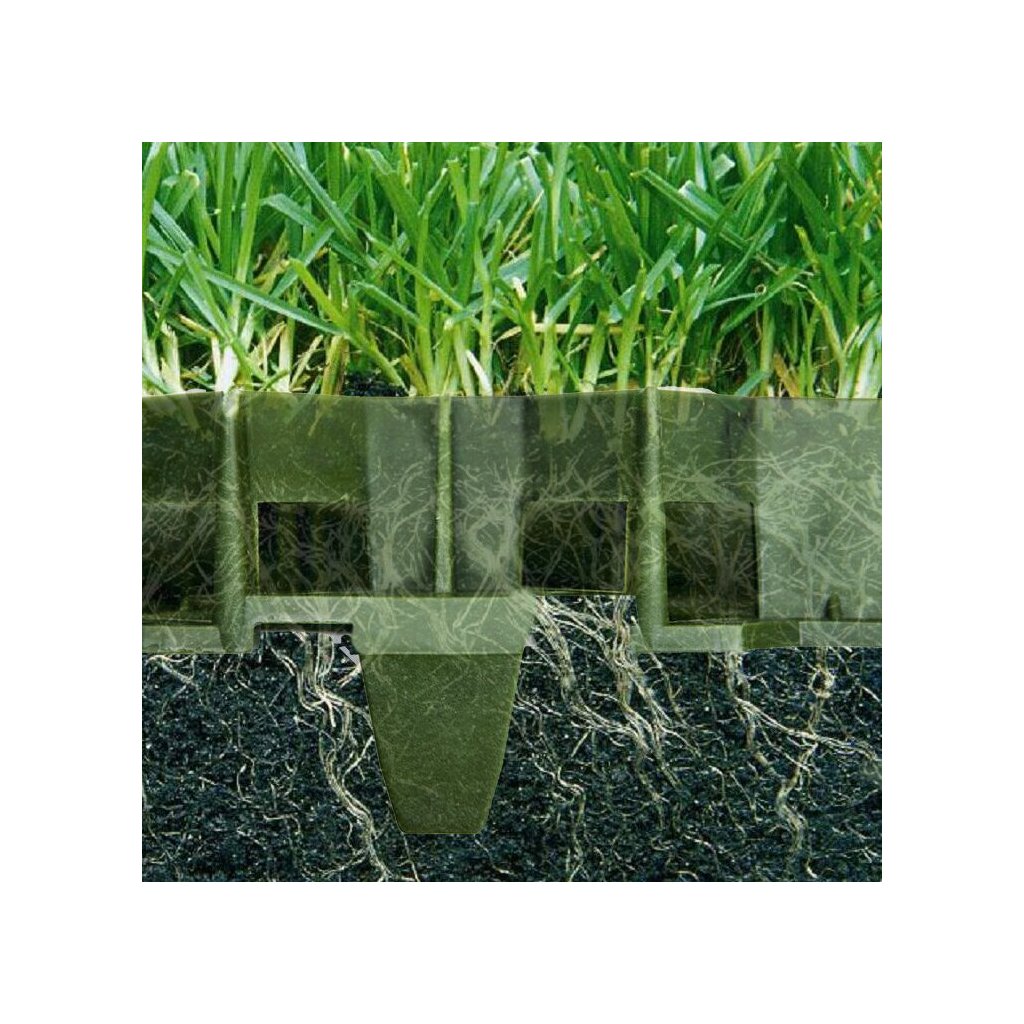 Prostor v mřížkách můžete nechat i prázdný. Mřížky na lícní straně mají protiskluzové výčnělky, na spodní straně jsou opatřeny fixačními hroty, po obvodu jsou zámky pro spojování s ostatními zatravňovacími mřížkami. Jedinečný otevřený design umožňuje volný růst travních kořenů ve všech směrech. Buňky mřížek jsou částečně uzavřené ze spodní strany dlažby, tedy nedochází k migraci výplně.