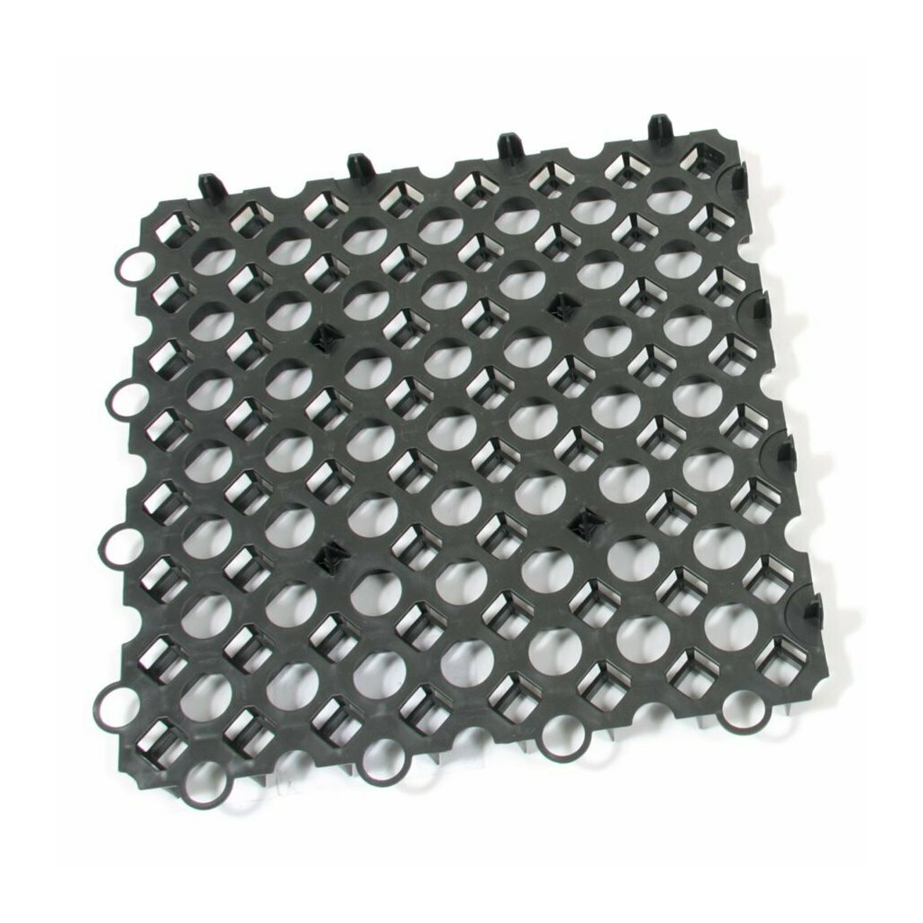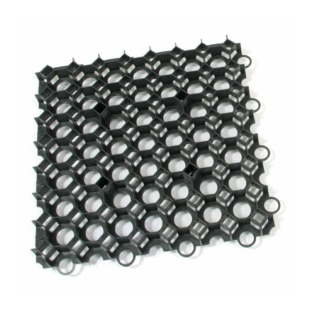 Prostor v mřížkách můžete nechat i prázdný. Mřížky na lícní straně mají protiskluzové výčnělky, na spodní straně jsou opatřeny fixačními hroty, po obvodu jsou zámky pro spojování s ostatními zatravňovacími mřížkami. Jedinečný otevřený design umožňuje volný růst travních kořenů ve všech směrech. Buňky mřížek jsou částečně uzavřené ze spodní strany dlažby, tedy nedochází k migraci výplně.