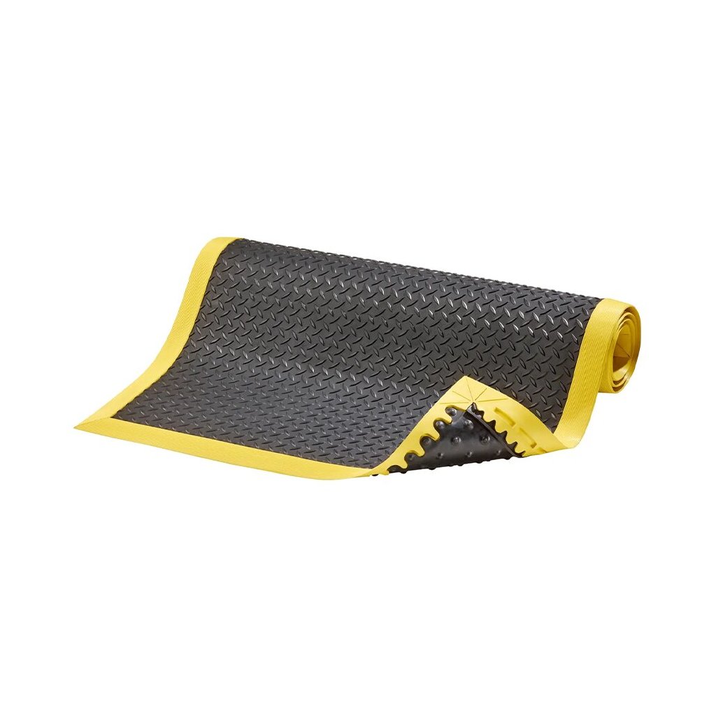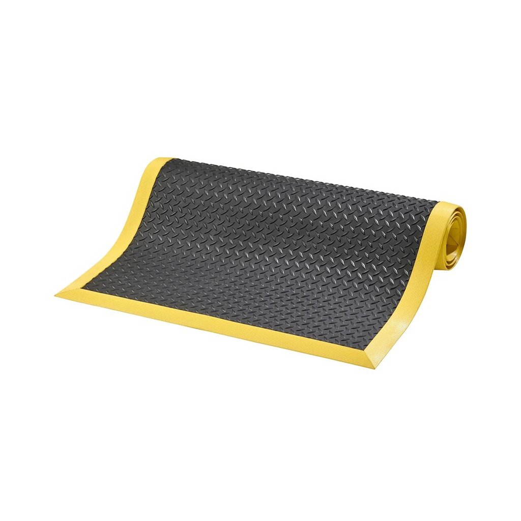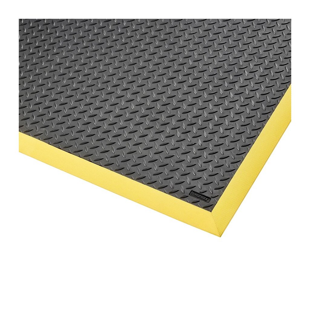 Tato rohož je vyrobena z vysoce kvalitního materiálu, který zajišťuje vysokou odolnost proti otěru a odolnost proti olejům a chemikáliím. Povrchová úprava společně s dezénem "diamant" zabezpečuje dobrou oporu podrážkám a zároveň dovoluje snadné otáčení pracovníků a protiskluzovou ochranu.