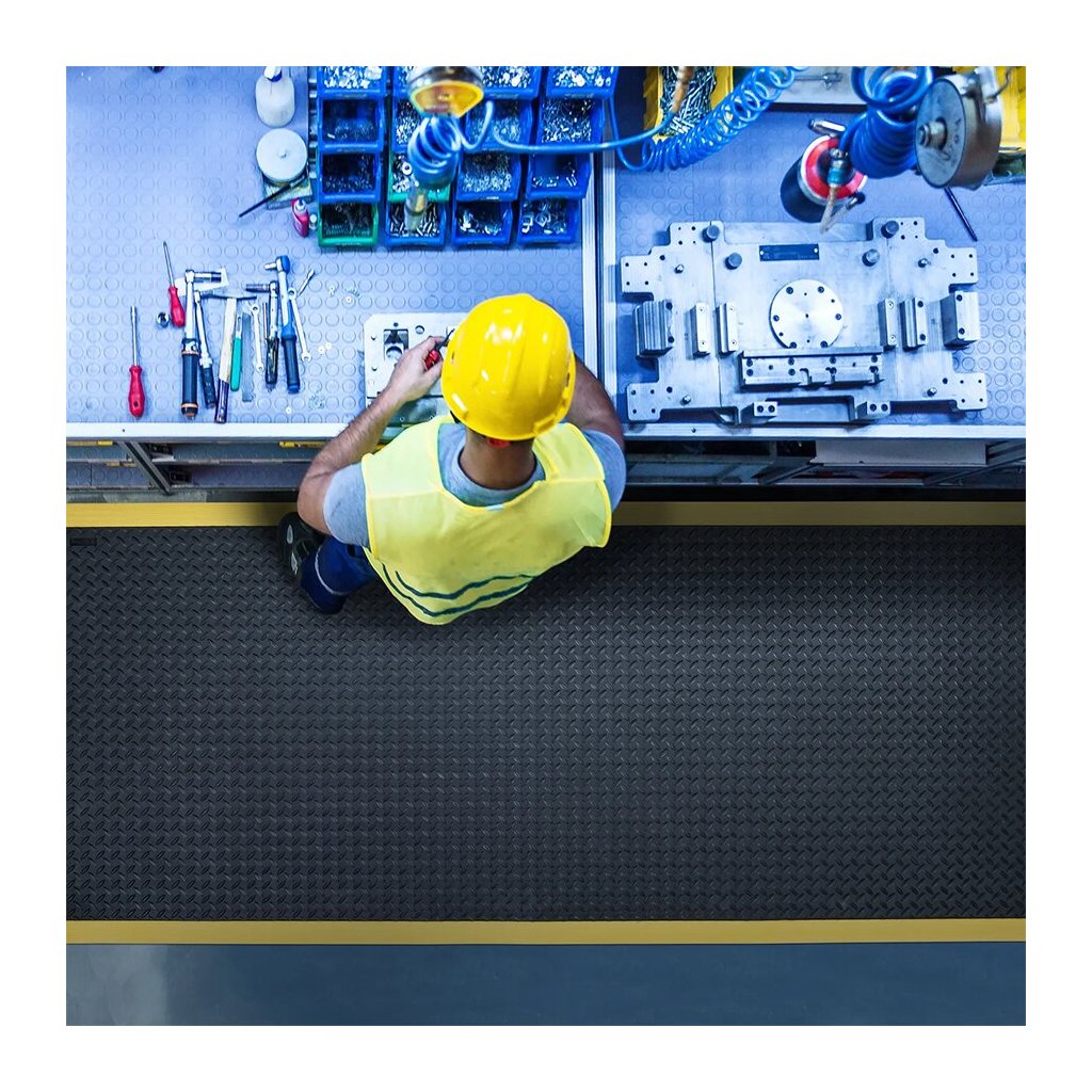 Průmyslové protiúnavové protiskluzové rohože jsou určeny do výrobních prostor a hal. Díky vynikajícím protiúnavovým vlastnostem zmírňují únavu při dlouhodobém stání a chrání pracovníky před negativními vlivy studených betonových podlah. Po obvodu jsou vybaveny náběhovou hranou pro prevenci zakopnutí.