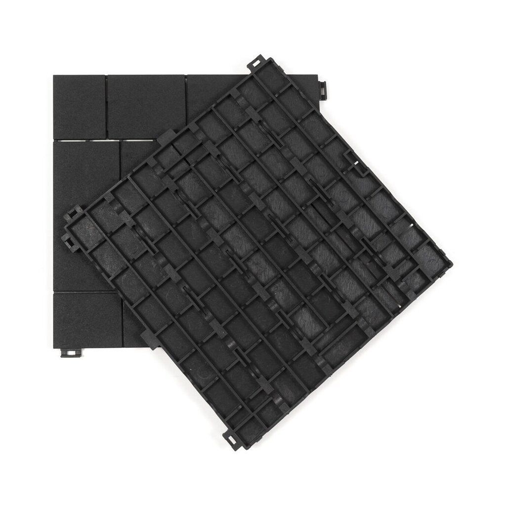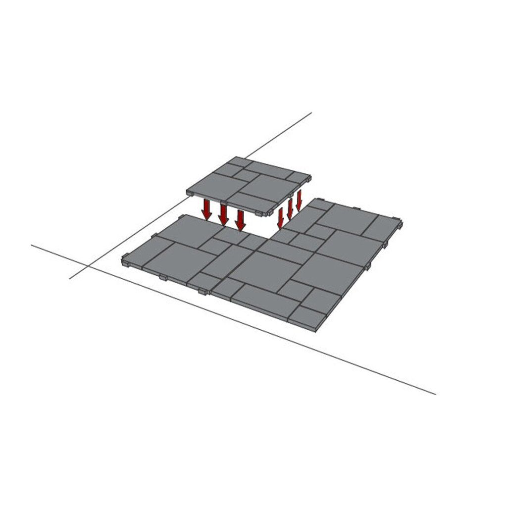 Zámkový systém umožňuje rychlý a jednoduchý způsob pokládky i rozebrání. Díky bočních spojovacích háčku je instalace dlažby velmi jednoduchá a hlavně rychlá.
