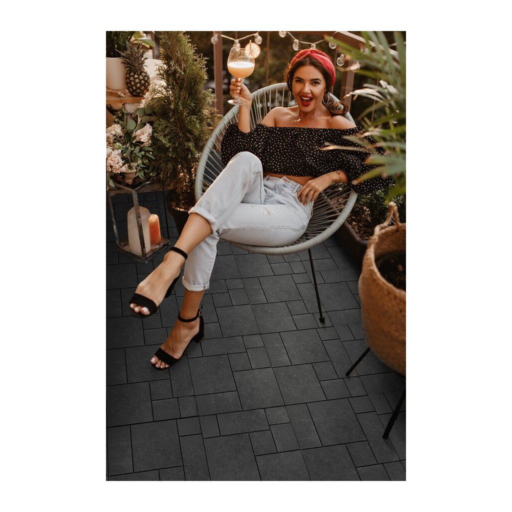 Terasová dlažba Mosaic představuje dokonalou harmonii mezi estetikou a funkčností. Dlaždice z recyklovaného granulátu v imitaci kamene zajišťuje vysokou odolnost a dlouhou životnost. Praktické drážky na dlažbě zajišťují odtok přebytečné vody. A tedy se voda neshromažďuje mezi dlažbou a zemí, což zamezí vzniku plísně. Dlaždici je možné použít, jak v interiéru domu, na terase, tak i u bazénu. Jakékoliv prostranství se tedy může proměnit na schůdné „se stylem“.