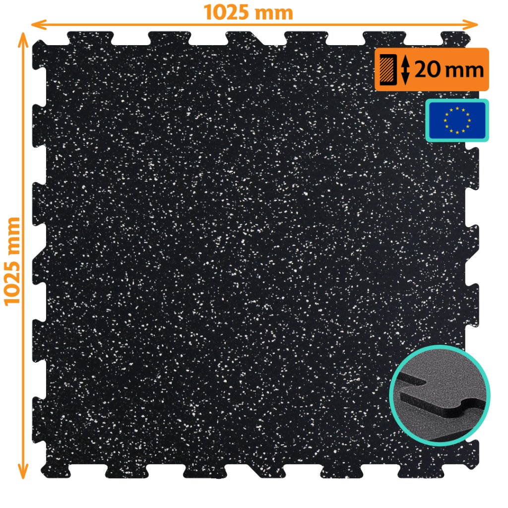 Podlaha do posilovny puzzle dílce SimpleJack PuzzlePro PP20 – ideální pro komerční i domácí posilovny, fitness, dílny, garáže i střelnice. Tlumení nárazů, snadná instalace a izolace od chladu.