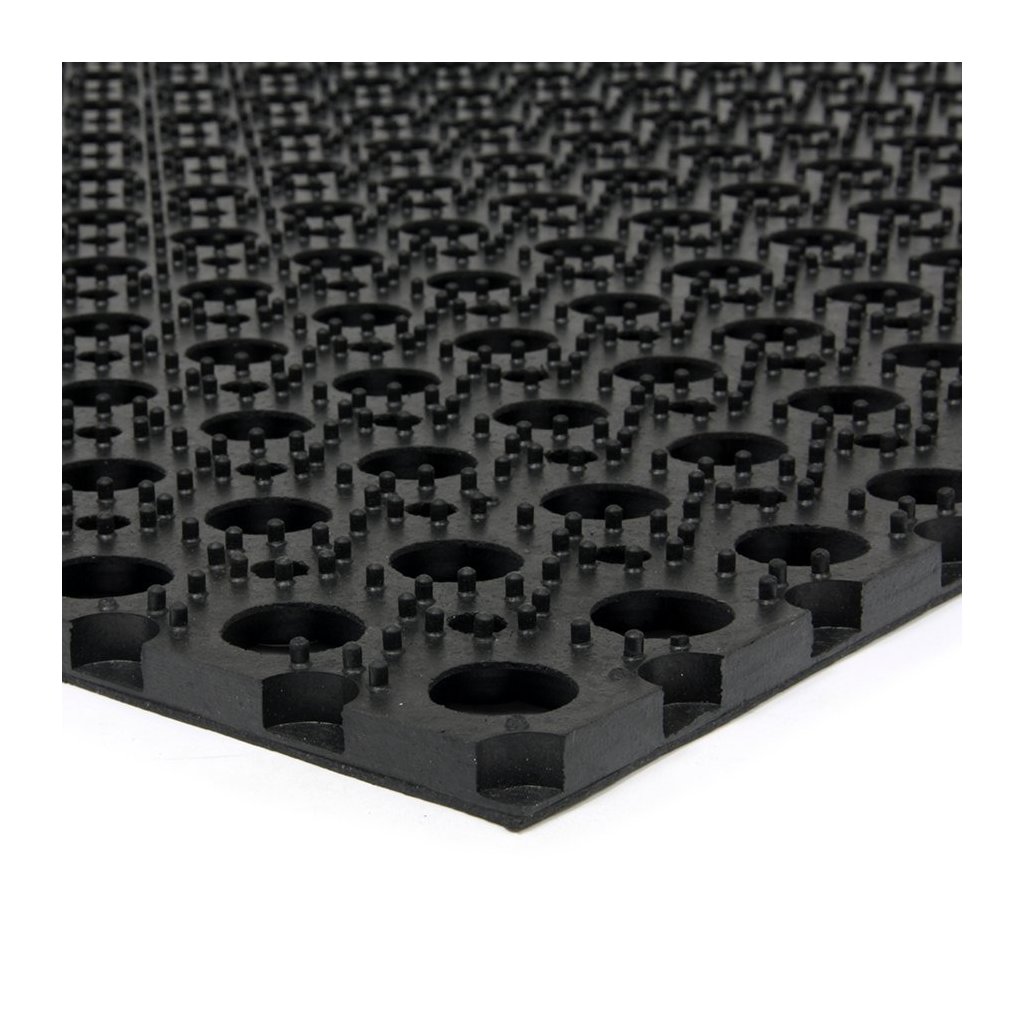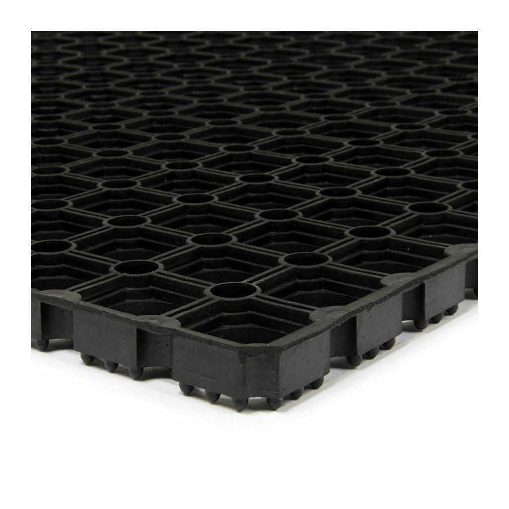 Venkovní gumová vstupní rohož Honeycomb je vhodná pro odstranění hrubých nečistot jako je sníh a bahno. Tuto rohožku nejčastěji vidíte jako vstupní čistící rohož u vstupů do budov. Lze použít také jako zatravňovací rohož pro zatravnění namáhaných ploch.