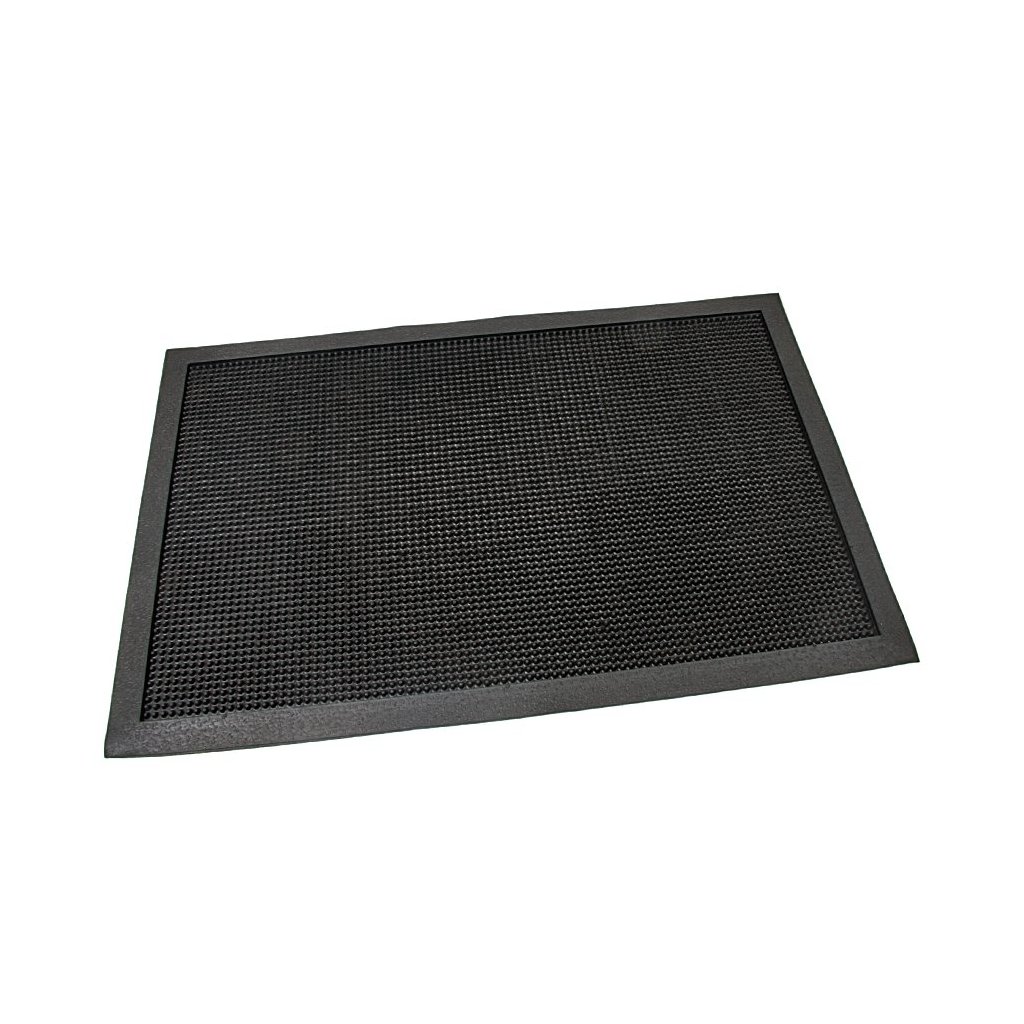 Malá gumová rohožka s kartáčovým efektem vhodná pro odstranění drobných nečistot - bahno, tráva, zbytky sněhu. Své uplatnění nejčastěji rohož najde před dveřmi bytů, rodinných domů či kanceláří. Díky obvodové hraně, která zadrží vodu na rohoží, rohož často slouží i jako odkládací plocha pro mokrou obuv / odkapávač na boty.
