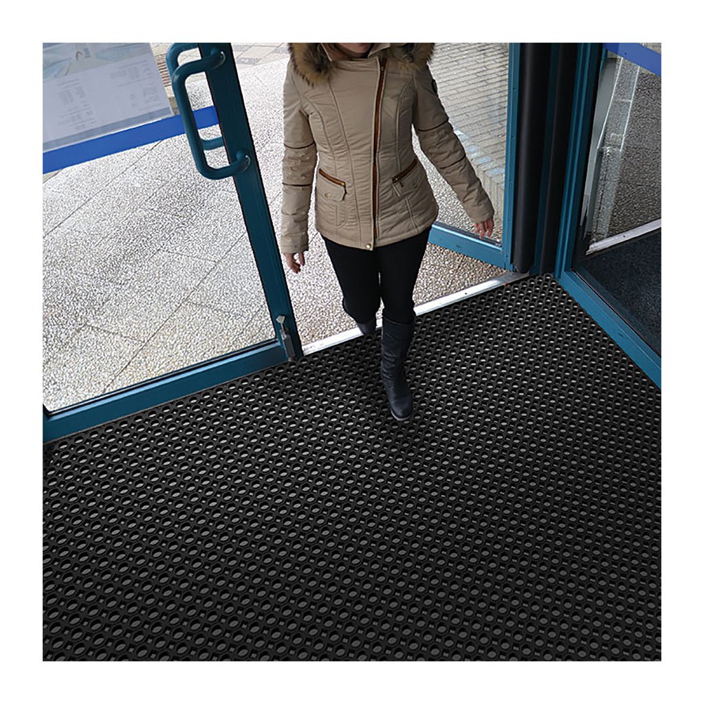 Venkovní gumová vstupní rohož Octomat Elite je vyrobena z tvrdé přírodní pryže a je vhodná jako vstupní rohož nebo čistící zóna pro odstranění hrubých nečistot jako je sníh a bahno. Tuto rohožku často vidíte jako vstupní čistící zónu u vstupů do budov, obchodních center, u lyžařských vleků nebo ve stájích.