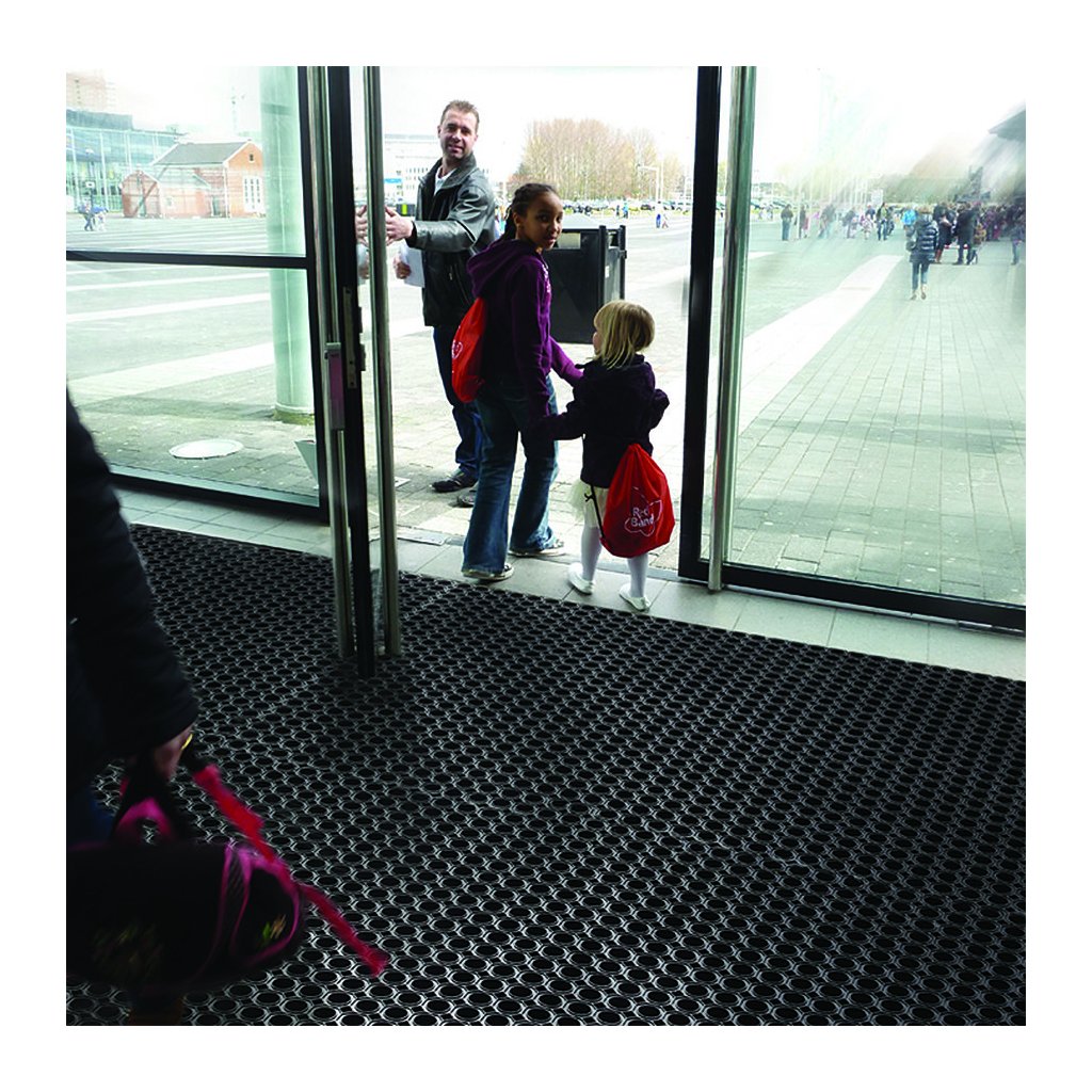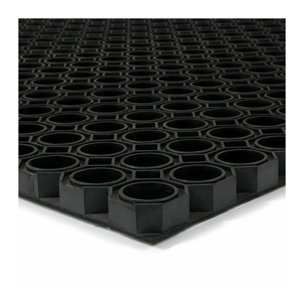 Venkovní gumová vstupní rohož Octomat Elite je vyrobena z tvrdé přírodní pryže a je vhodná jako vstupní rohož nebo čistící zóna pro odstranění hrubých nečistot jako je sníh a bahno. Tuto rohožku často vidíte jako vstupní čistící zónu u vstupů do budov, obchodních center, u lyžařských vleků nebo ve stájích.