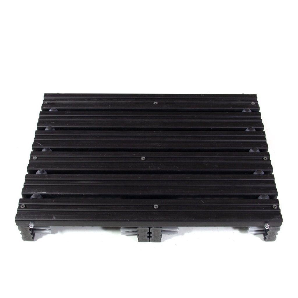 Plastový kartáčový čistič podrážek obuvi je ve spodní části doplněn o gumové protiskluzové podložky. Díky použití několika čistících kartáčů a jejich vhodnému rozložení je schopen očistit i bok podrážek obuvi.