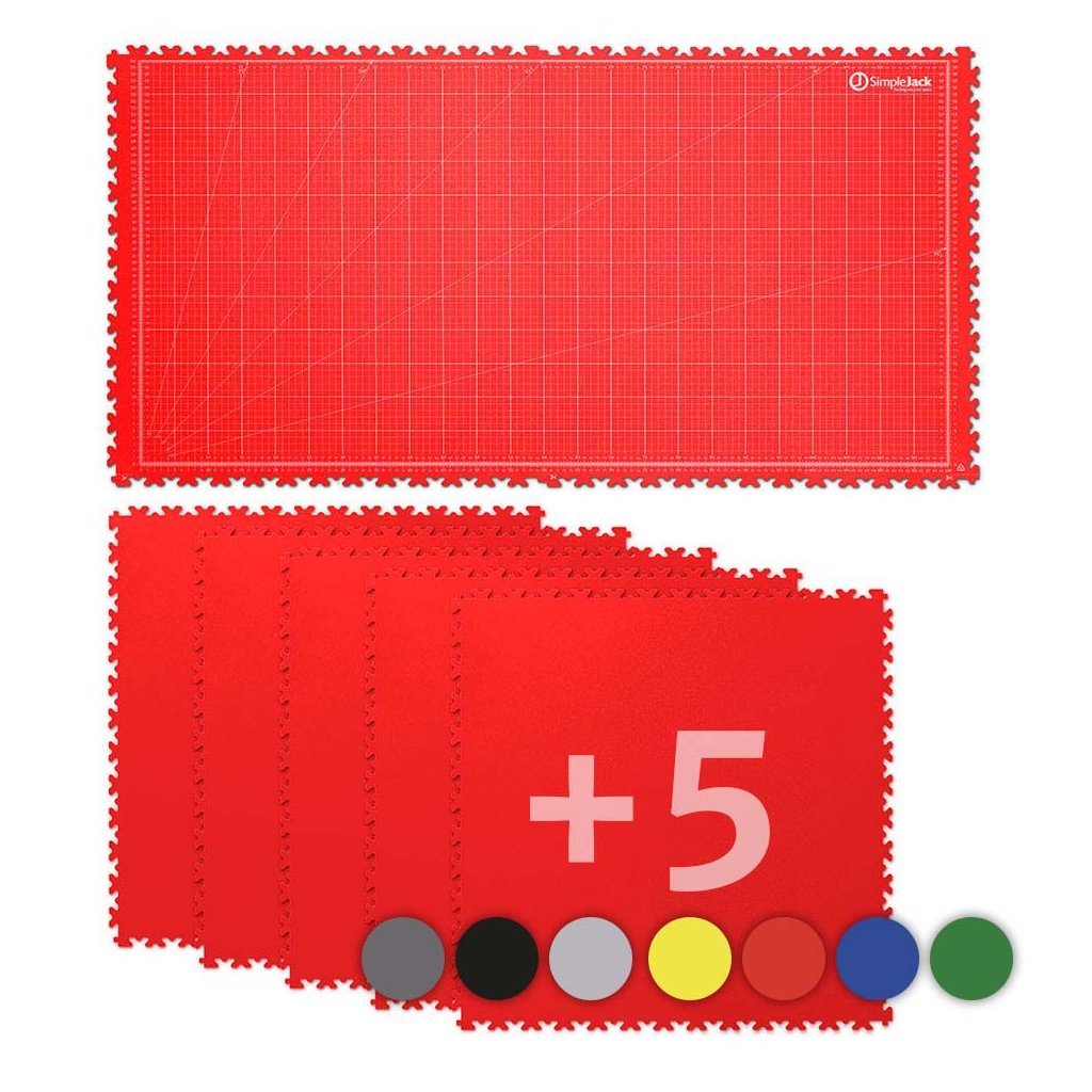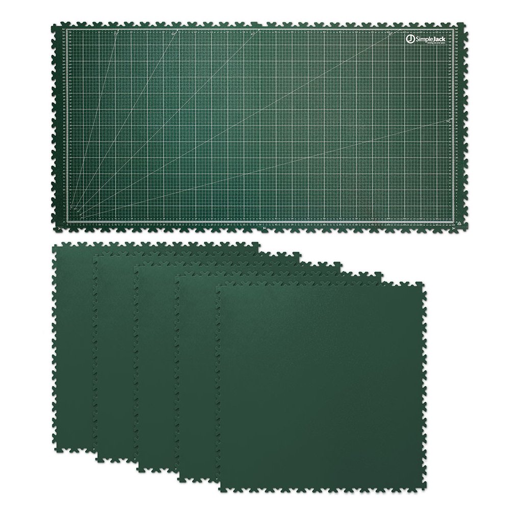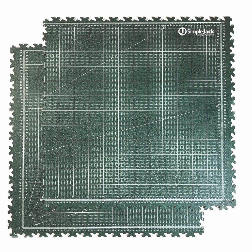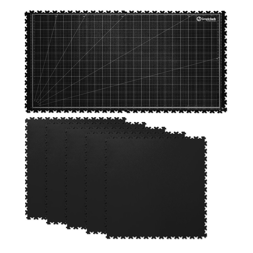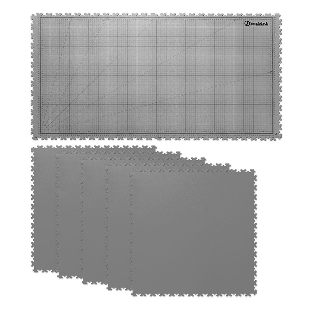 Základní set SimpleJack Grid +5 s měřící mřížkou se skládá ze sedmi vylisovaných vinylových dlaždic, které ochrání povrch vašeho stolu a zároveň poskytnou perfektní prostor pro realizaci vašich nápadů. Na dvou hlavních dlaždicích se nachází technický grid na měření, zatímco dalších 5 dlaždic můžete libovolně připojit podle tvaru pracovní plochy.