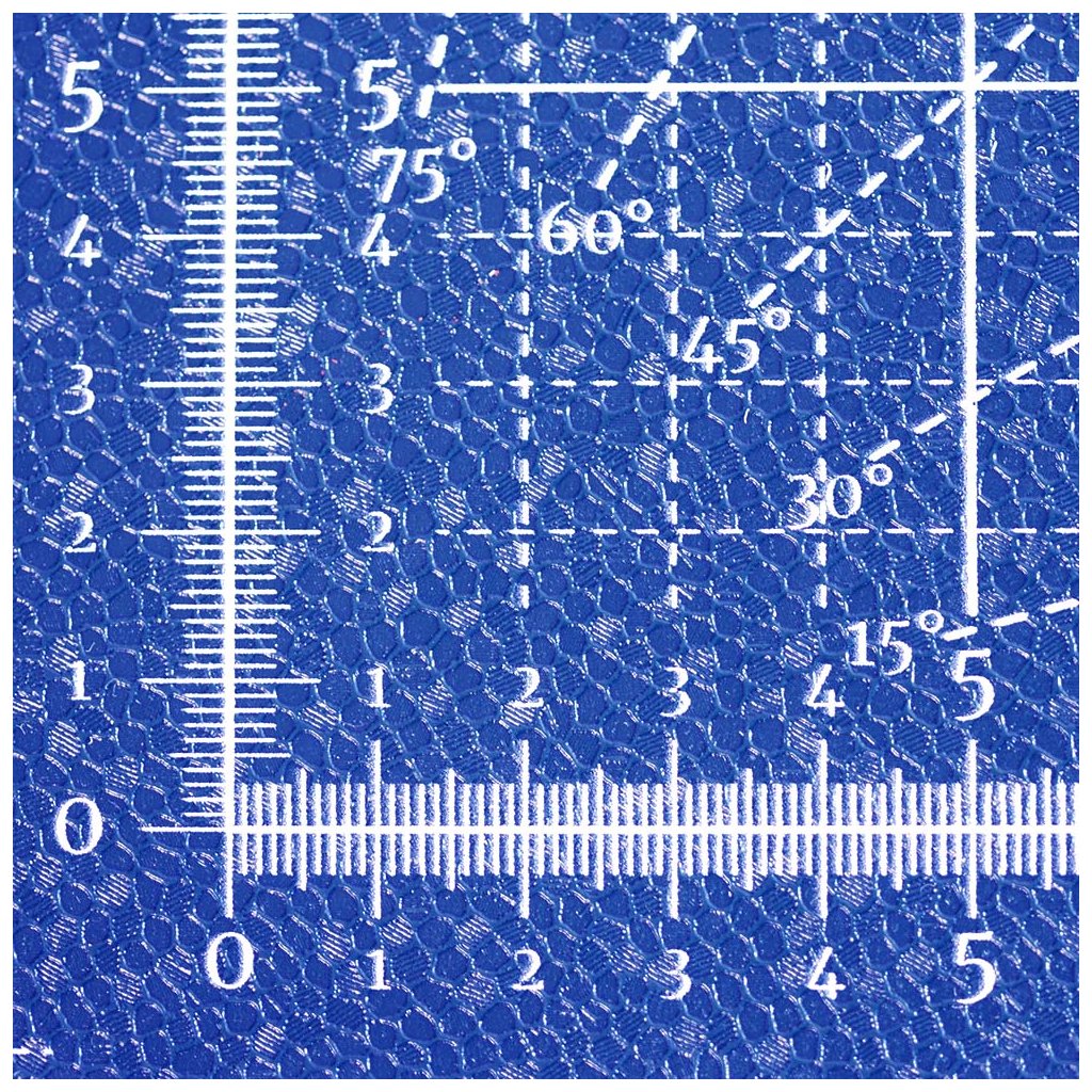 Všechny 4 strany jsou označeny po milimetrech s tím, že samotný grid tvoří bloky velké 1 x 1 cm. Aby toho nebylo málo, v levém dolním rohu je vyznačeno hned 6 různých úhlů, takže při tvorbě ani nemusíte hledat úhloměr.