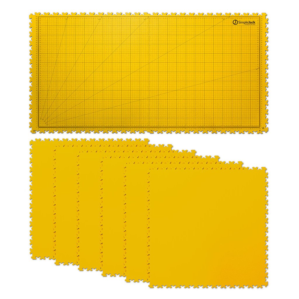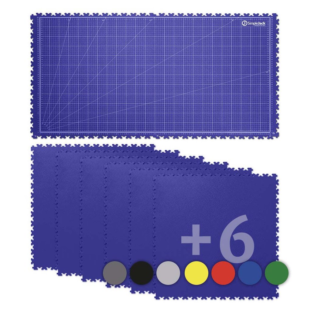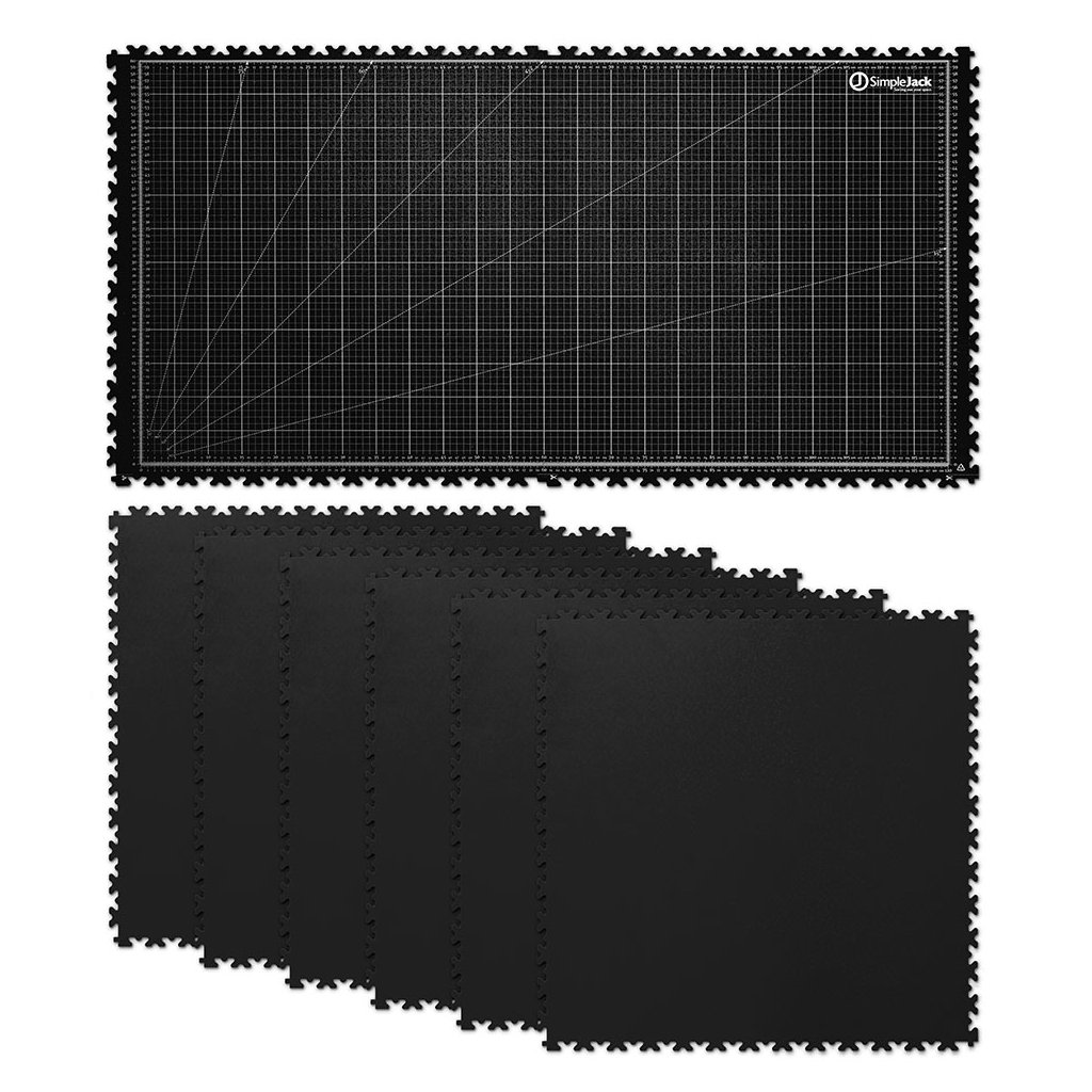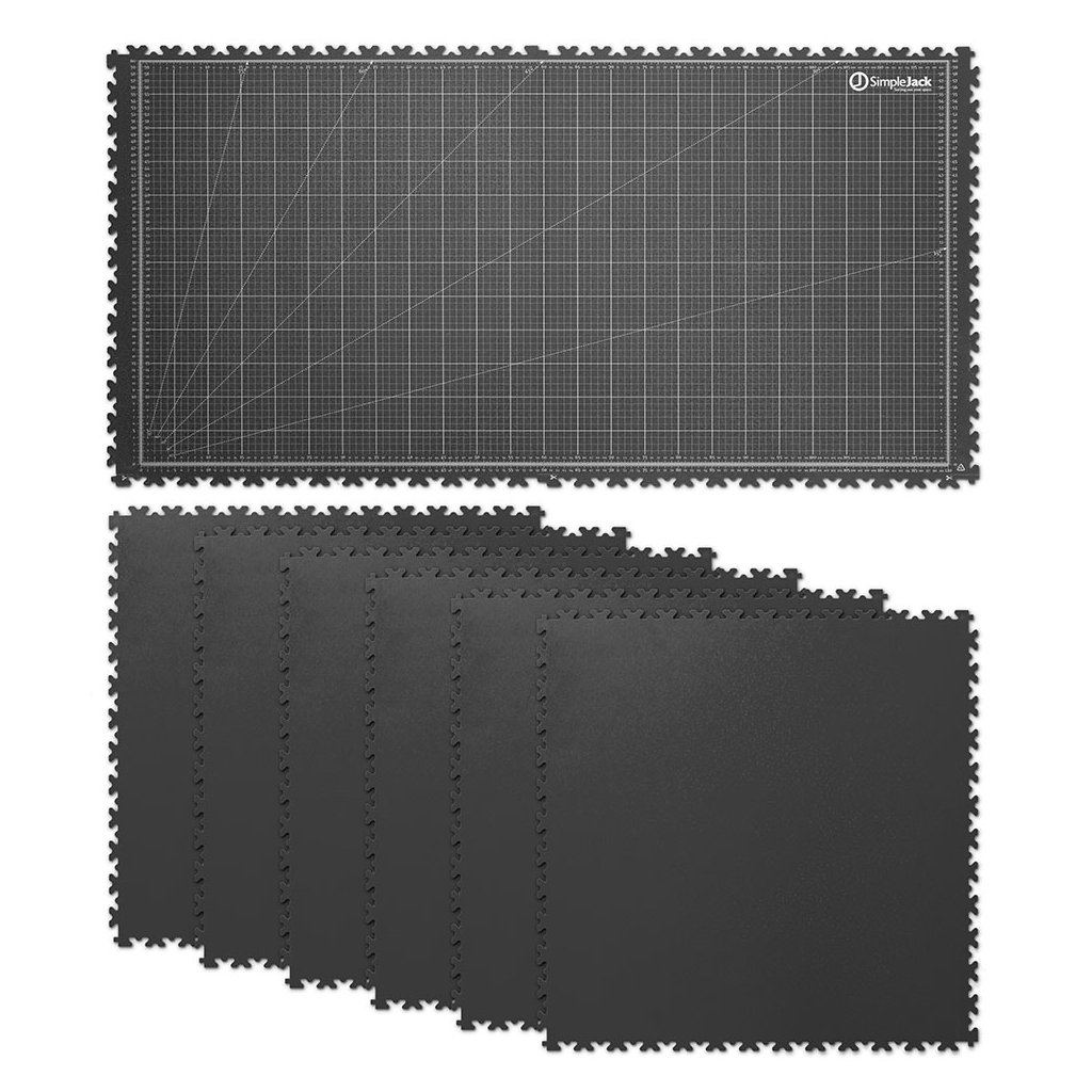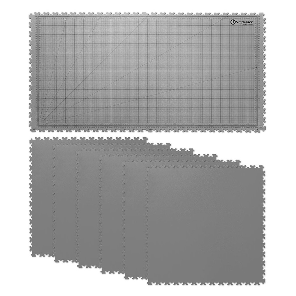 Základní set SimpleJack Grid +6s m ěřící mřížkou se skládá z osmi vylisovaných vinylových dlaždic, které ochrání povrch vašeho stolu a zároveň poskytnou perfektní prostor pro realizaci vašich nápadů. Na dvou hlavních dlaždicích se nachází technický grid na měření, zatímco dalších 6 dlaždic můžete libovolně připojit podle tvaru pracovní plochy.