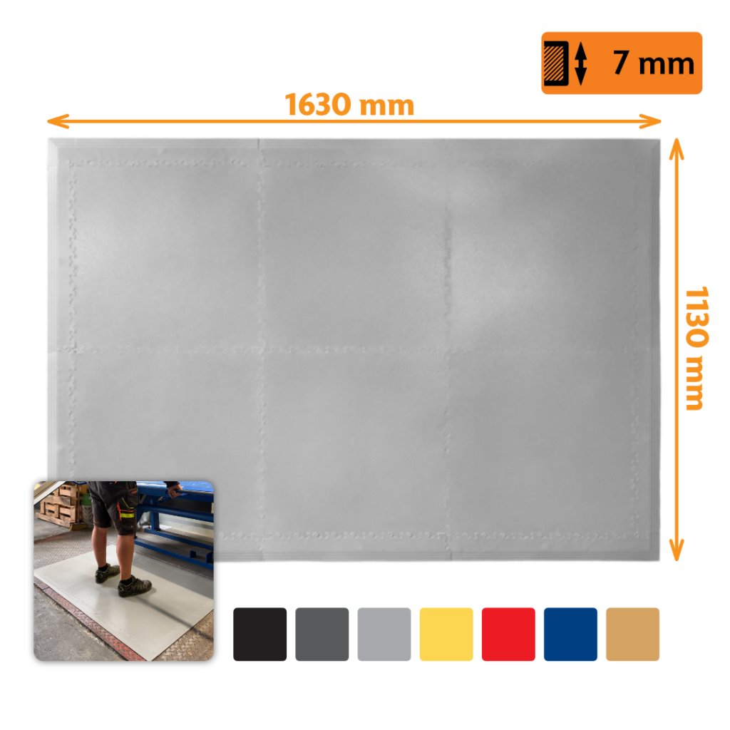 Podložka opticky vymezuje pracovní zónu, zvyšuje bezpečnost a chrání podlahu před poškozením – ať už jde o padající nářadí nebo těžké předměty. Podložka zároveň tlumí vibrace a otřesy, které vznikají při běžném provozu lehčích strojů nebo při pádu nářadí.