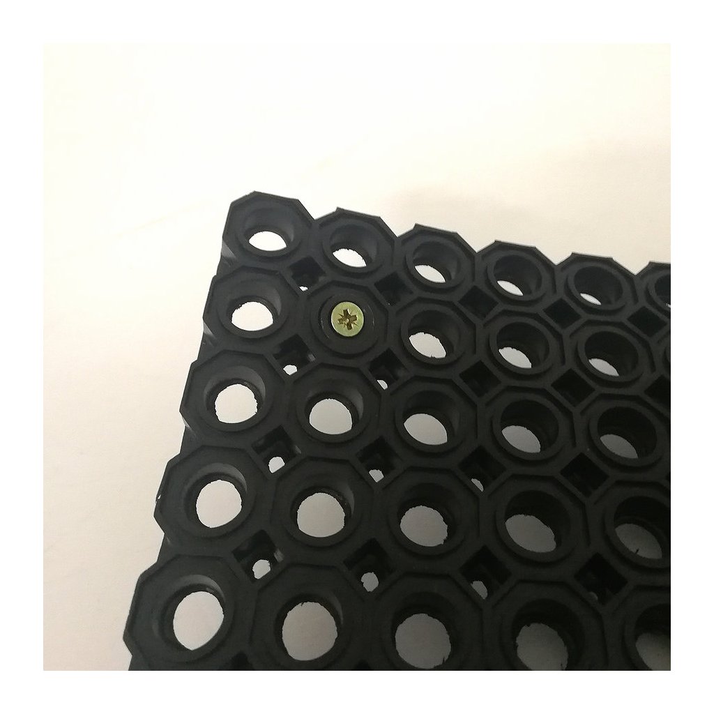 U rohoží HoneyComb a HoneyStep se plastový váleček vkládá do menších otvorů rohože, kde přesně pasuje. Otvory vyberte dle uvážení, obvykle se vkládá do otvoru kousek od rohu / okrajě rohože.
