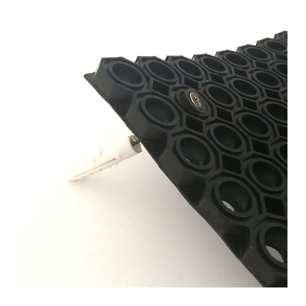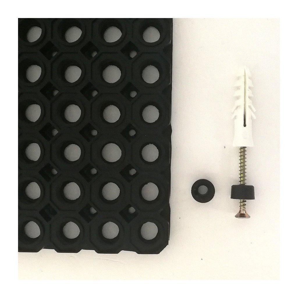 Zajišťovací sada (plastový váleček, hmoždinka, vrut) pro rohože OctoMini, OctoMini Elite, HoneyComb a HoneyStep zajistí rohož nebo více spojených rohoží proti pohybu. Dle velikosti a předpokládaného zatížení rohoží se volí počet sad, doporučejeme 4 sady na jednu rohož.