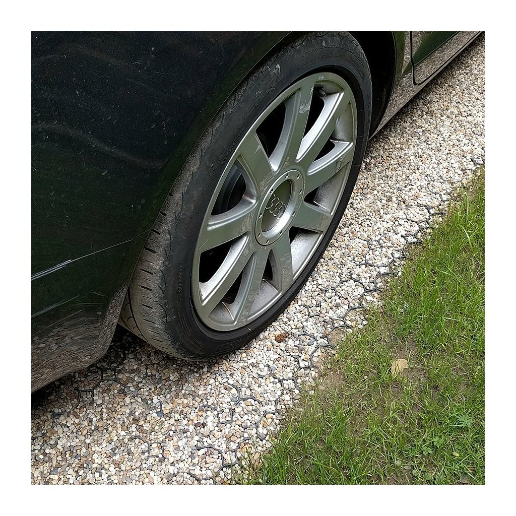 Před zahájením pokládky je nutné stávající trávník a půdu odstranit do hloubky 30-40 cm. Poté rovnoměrně rozložíme nosnou vrstvu štěrku/kameniva o hrubosti 20-30 mm. Tato vrstva by měla být vyrovnána a mechanicky zhutněna pomocí vibrační desky min. 25kN.